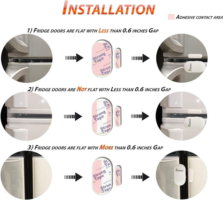 - EASY TO USE - FRIDGGI emits a low volume beep when you exceed the allowed gap between the Alarm and the mini sensor; open/close the door to check before peeling the double-sided tape.