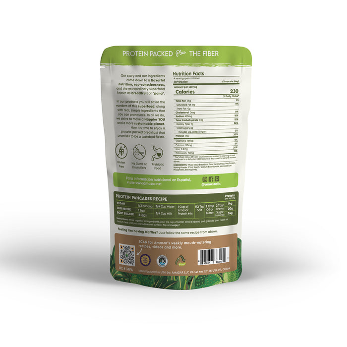 An eco-friendly pancake & waffle mix, tailored to those who recognize the significance of nourishing their body with the best nature has to offer, our mix seamlessly marries the potency of protein with the wholesome essence of plant-based ingredients. Whether you're an ardent athlete seeking to bolster muscle strength or an individual embarking on a journey toward a more vibrant lifestyle, our mix stands ready to elevate your mornings. Immerse yourself in a delightful symphony of flavors, all backed by a tasty protein punch that truly satisfies you.