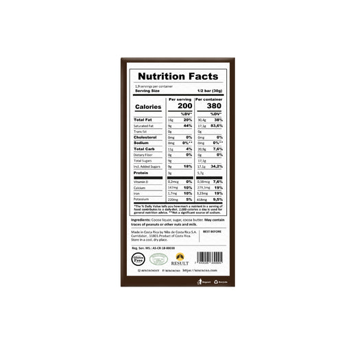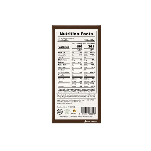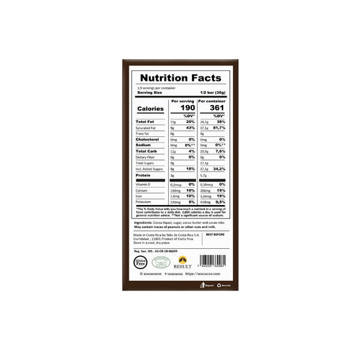 AraCacao | Bean to Bar | 50% Dark Milk Chocolate | Gluten-Free | Kosher Certified | Free of Soy Lecithin | Made in Costa Rica | 57g