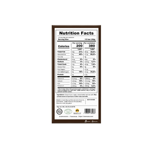 AraCacao | Bean to Bar | 70% Dark Chocolate Cacao Nibs| Gluten-Free | Kosher Certified | Free of Soy Lecithin | Made in Costa Rica | 57g