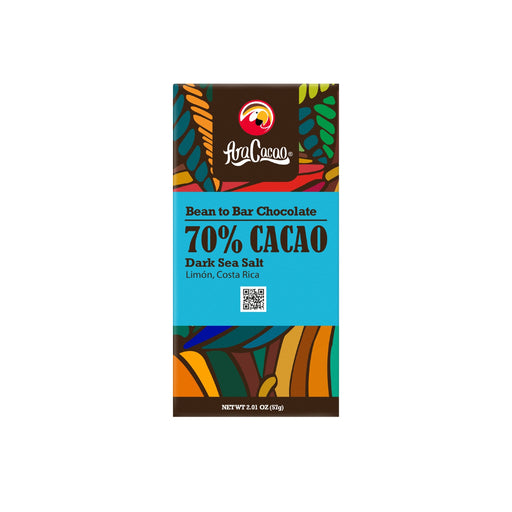 AraCacao | Bean to Bar | 70% Dark Sea Salt Chocolate | Gluten-Free | Kosher Certified | Free of Soy Lecithin | Made in Costa Rica | 57g