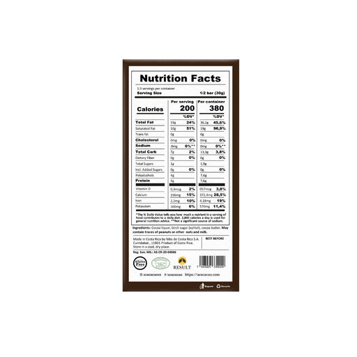 AraCacao | Bean to Bar | 85% Dark Chocolate Bar| Gluten-Free Cacao | Kosher Certified | Dark Birtch Sugar | Keto Friendly | Made in Costa Rica | 57g
