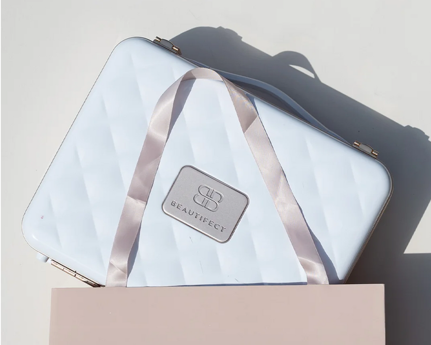 The sleek, USB-C rechargeable design offers ultimate convenience, allowing you to go cordless for up to a month. Its sturdy construction protects your makeup while traveling and is designed to hold what you would fit in a large makeup bag that you would use on a daily basis.