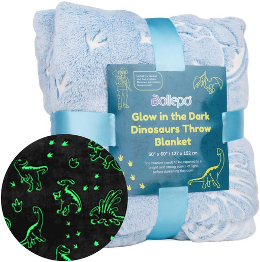Glow in The Dark Throw Blanket, Dinosaurs Design, Soft Fuzzy Plush Fleece Blanket for Boys, Girls, Teens and Toddlers