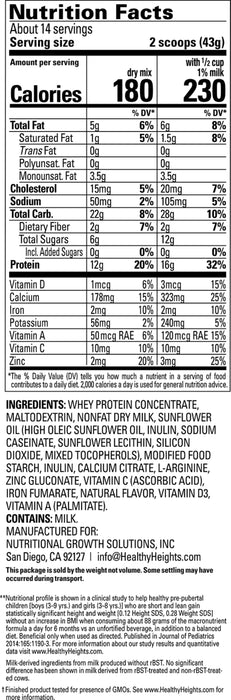 Healthy Heights Grow Daily 3+ Shake Mix Powder, 12g Protein, 1.36lb