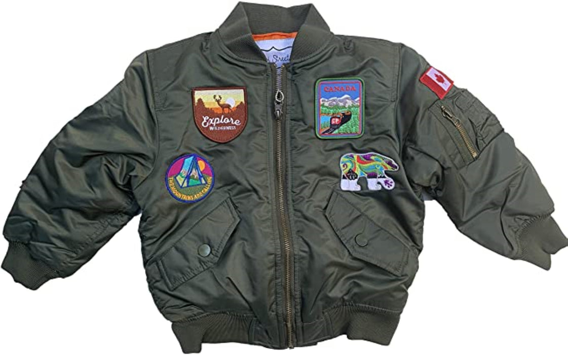 Canada bomber jacket features multiple patches representing beautiful Canada